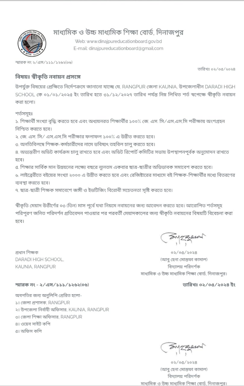 প্রতিষ্ঠানের স্বীকৃতি পত্র- ৩১/১২/২০২৭ পর্যন্ত